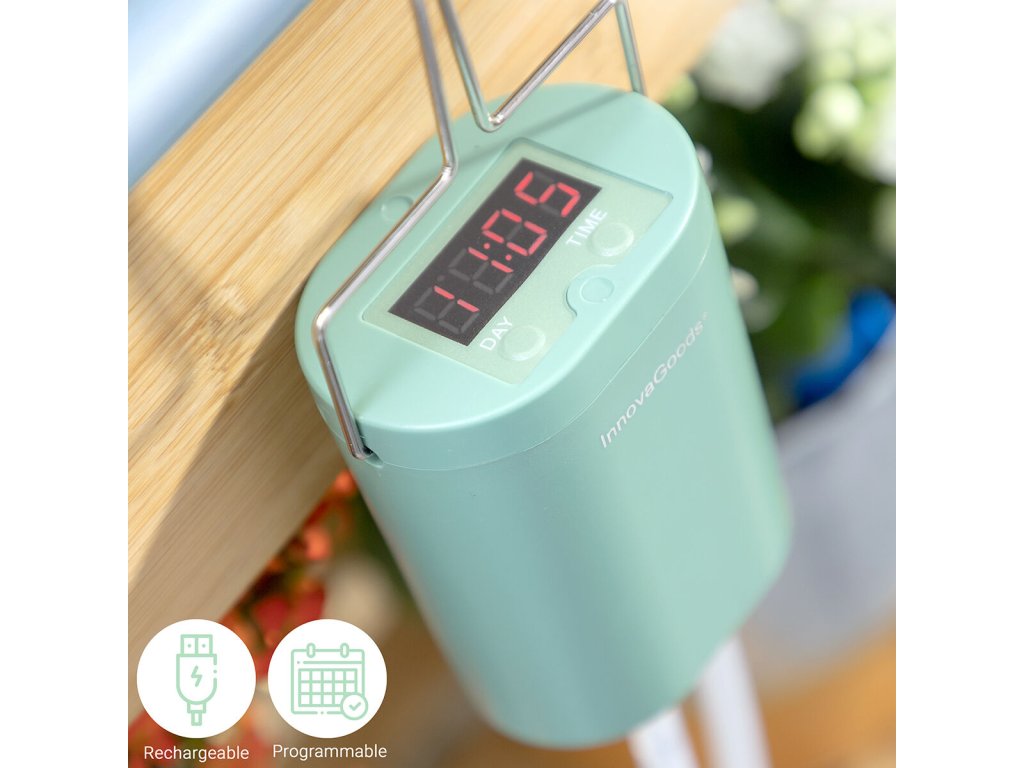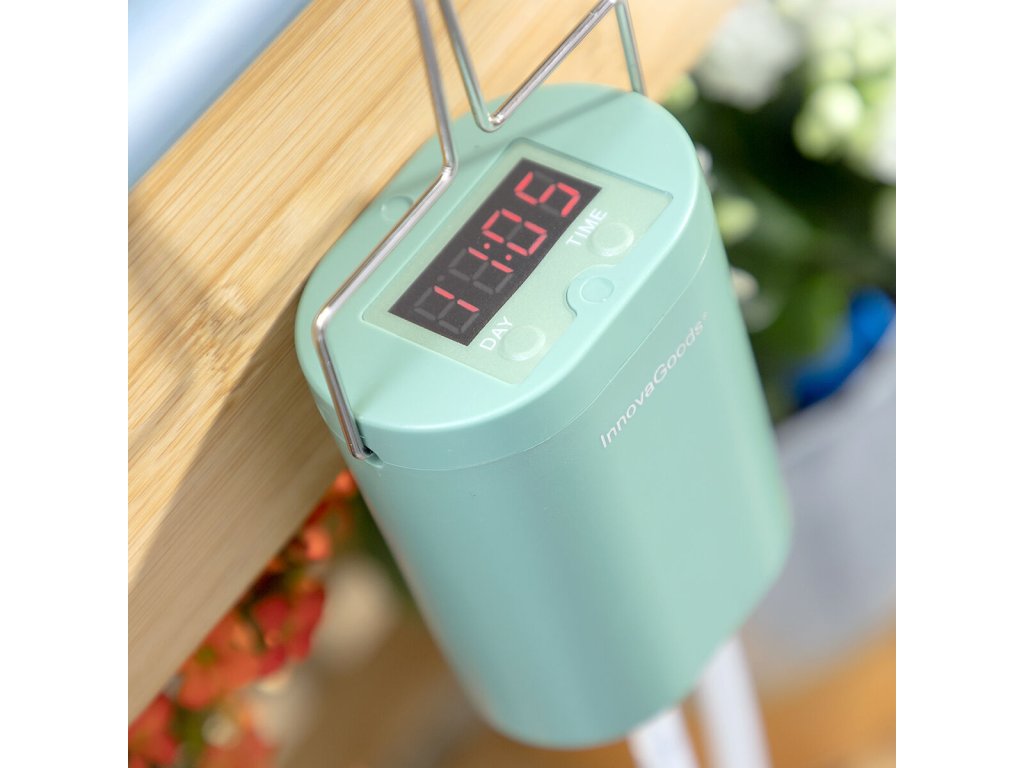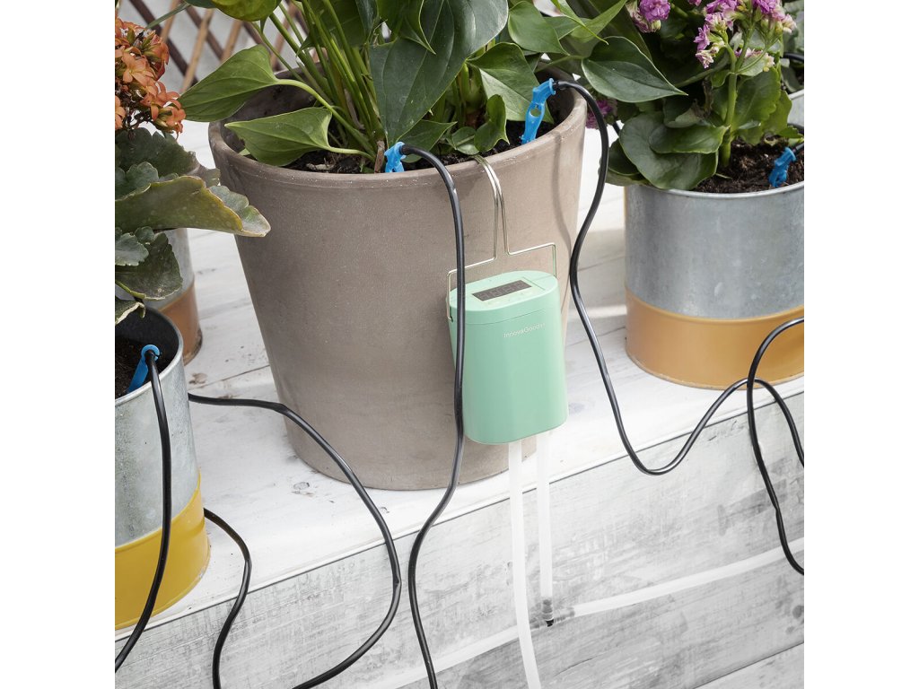InnovaGoods nabízí nejnovější produkty pro vaši domácnost, jako Automatický kapací zavlažovací systém na květináče Regott InnovaGoods ! Objevte široké spektrum vysoce kvalitních produktů, které si stojí za svou funkčností, efektivitou a inovativním designem: světla, úložné prostory, dekorace, klimatizace, zahrada, mazlíčci, atd.Originální a kompletní automatický systém kapkové závlahy do květináčů, který umožňuje pohodlné a snadné zalévání až 8 rostlin současně. Kromě toho, že šetří vodu, čas a námahu, odpadá nepříjemnost spojená se zaléváním rostlin ručně a osobně, což je velkou pomocí pro snazší a bezpečnější provedení tohoto úkolu, aniž byste zapomínali a stresovali se, obvykle nebo o dovolené atd. Toto zavlažovací zařízení je dobíjecí (obsahuje nabíjecí kabel USB na micro USB) a programovatelné, protože má digitální časovač, který ukazuje interval dnů zalévání (od 1 do 9 dnů) a požadovanou dobu zavlažování v sekundách. Sada obsahuje kovový věšák na elektrické zařízení, příslušenství s trojitým konektorem (T), zavlažovací hadici a hadičky a 8 zavlažovacích kolíků, které se vkládají do hlíny každého květináče. Snadno se instaluje podle přiložených montážních pokynů. Jeho průtok je 1200 ml/min (± 100 ml) a provozní teplota je od 5° do 50 ºC. Umožňuje také ruční zavlažování pomocí jednoho z tlačítek na zařízení. Neobsahuje nádrž na vodu na zavlažování.