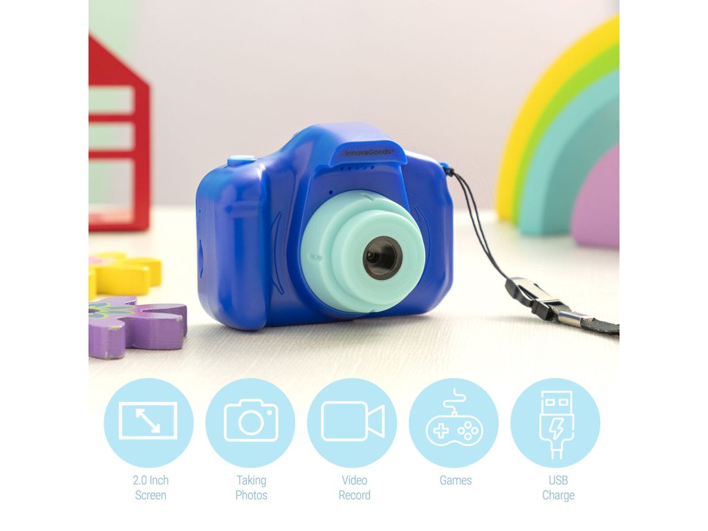Pokud jste vášnivými milovníky všech zařízení, InnovaGoods vám nabízí nejlepší a nejoriginálnější položky pro váš dům, auto, cestování, děti, technologie, zábavu, atd. Objevte širokou škálu vysoce kkvalitních produktů ,které si stojí za svou funkčností, vysokou kvalitou a inovativním designem, jako například Dětská digitální kamera Kidmera InnovaGoods!Dětská digitální kamera, se kterou si vaši potomci užijí chvíle zábavy a přitom budou rozvíjet svou kreativitu díky třem funkcím (fotografie, videa a hry). Vyberte si z pestré nabídky možností, efektů i tematických pozadí a potěšte se originálními výtvory! Děti si mohou pořizovat, prohlížet a přehrávat fotky nebo videa s kamarády i s celou rodinou, nebo si zahrát několik dětských videoher (funkce „hry“). Všestranná dobíjecí kamera s kompaktním a moderním designem v reflexním stylu, šňůrka na zavěšení kolem krku usnadňuje použití a zabraňuje pádům. 2palcový displej LCD, vstupní slot pro karty microSD s maximální kapacitou 32 Gb (karta není součástí balení), nabíjecí kabel USB na micro USB. Vhodná pro děti od 4 let.