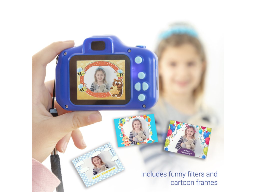- Dětská kamera dětský fotoaparát: Různé efekty a tematická pozadí