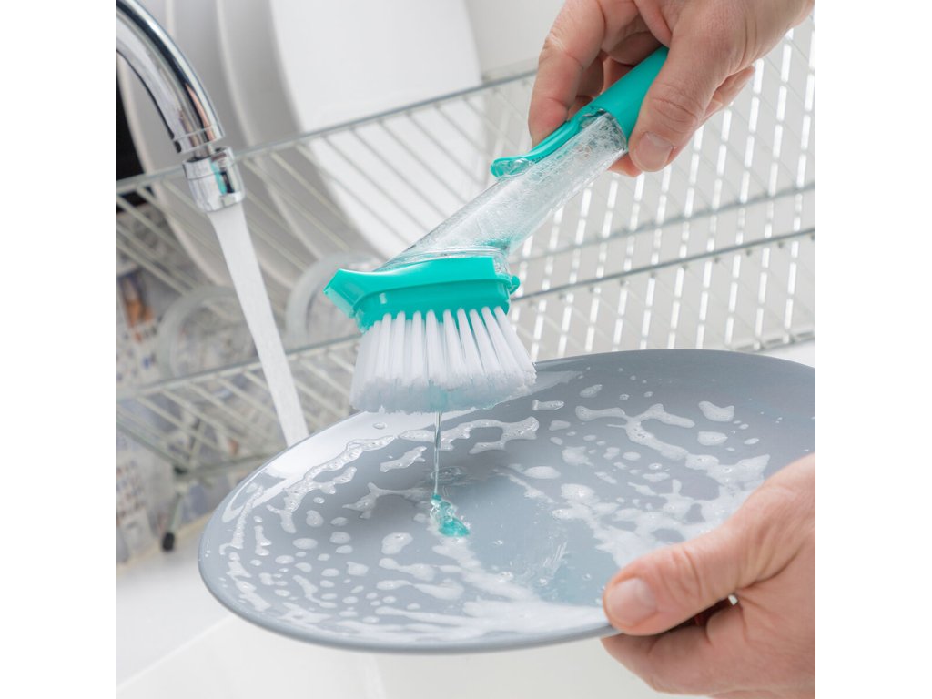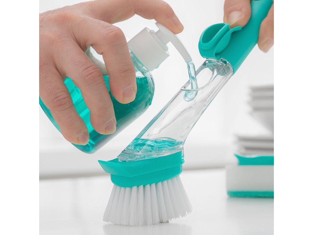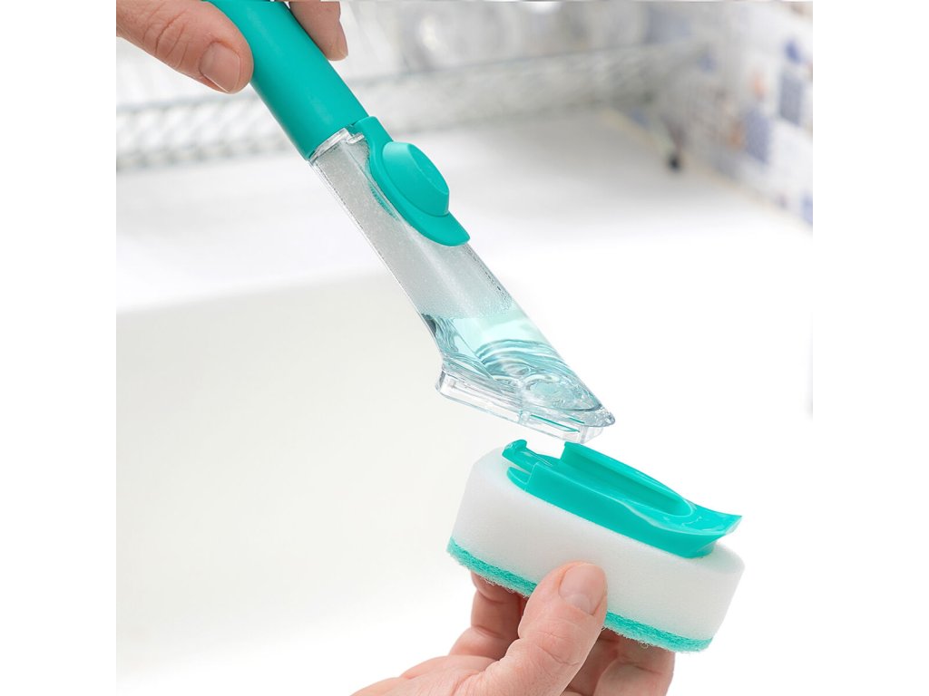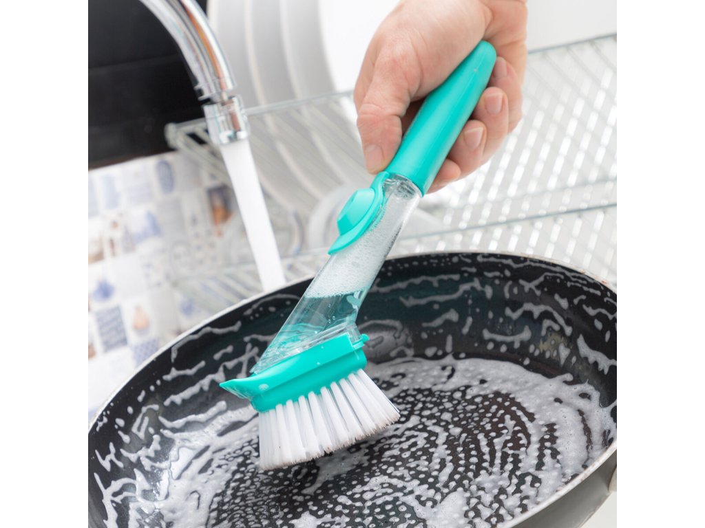 Drátěnka na nádobí s rukojetí a dávkovačem na mycí prostředek Cleasy