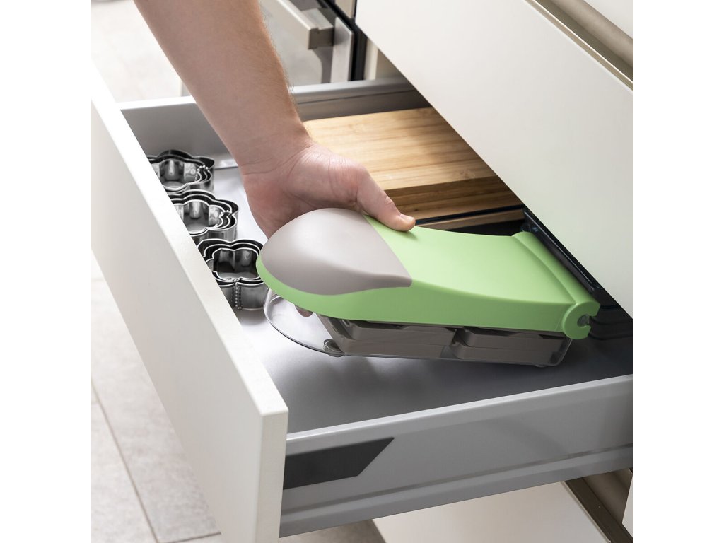 Snadná údržba: Kráječ je snadno rozložitelný a složitelný, což umožňuje jednoduché čištění a skladování bez zabírání velkého prostoru.