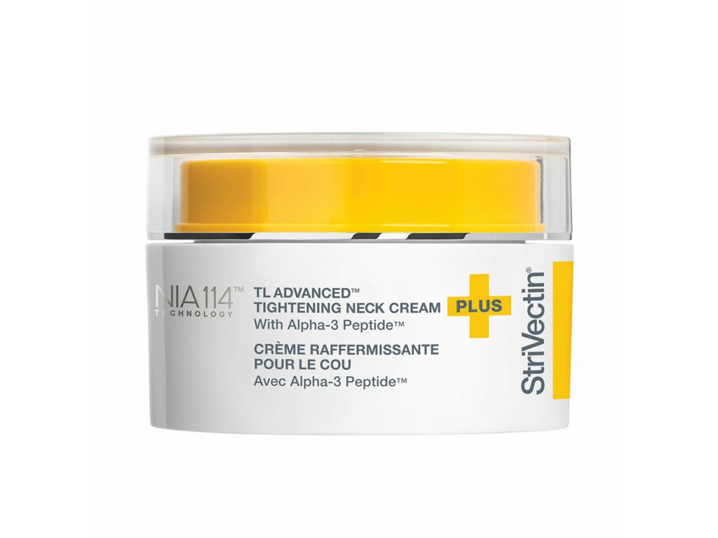 StriVectin TL Advanced Tightening Neck Cream PLUS je pokročilý krém určený pro zpevnění a vyhlazení pokožky krku a dekoltu. Jeho inovativní složení obsahuje patentovanou technologii Alpha-3 Peptide™, která cílí na přirozenou produkci kolagenu, elastinu a kyseliny hyaluronové v pokožce, čímž viditelně zvedá a vyhlazuje pokožku. Kromě toho obsahuje Spilanthol, přírodní extrakt, který podporuje pevnost pokožky tím, že ji viditelně zpevňuje a posiluje. Extrakt z medvědice lékařské a šalvěje muškátové pomáhají rozjasnit a sjednotit tón pleti. Při pravidelném používání dvakrát denně můžete očekávat zlepšení pevnosti, elasticity a textury pokožky, stejně jako redukci horizontálních linek na krku a vertikálních "spánkových vrásek" na dekoltu. Krém je vhodný pro všechny typy pleti a je bez parabenů a sulfátů.