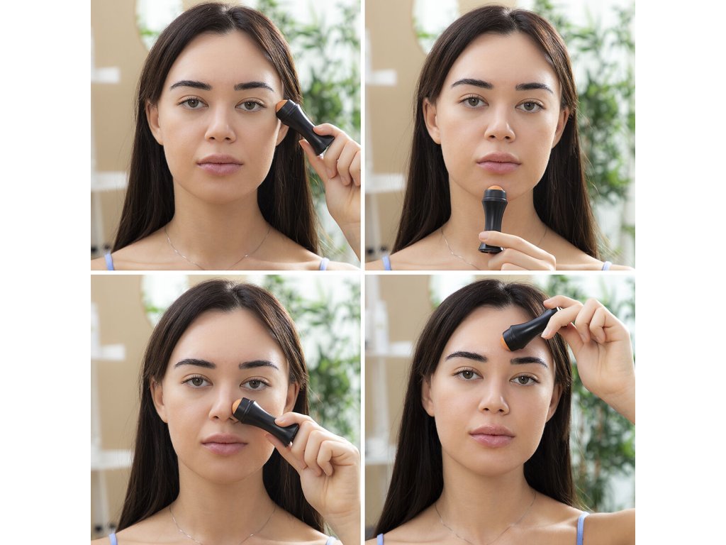 Tento válečekna obličej z vulkanického kamene se velmi snadno používá. Jednoduše sejmětekryt a jemně jím přejeďte přes T-zónu (čelo a nos) nebo jakoukoli oblastobličeje s přebytečnou mastnotou, čímž provedete uklidňující masáž obličeje,která zmatní pleť.