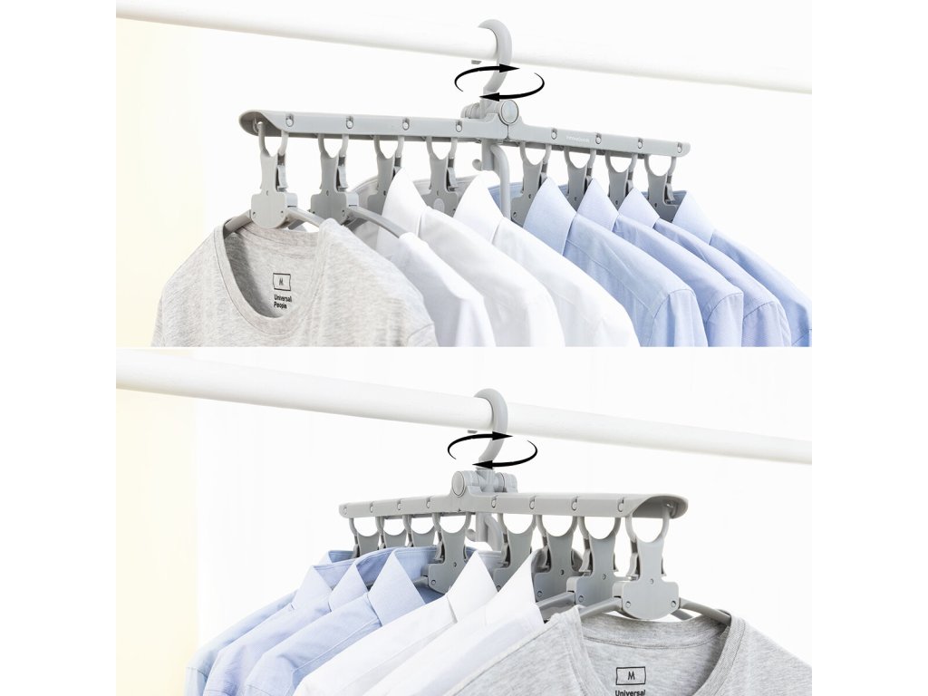 Věšák je možno používat ve vodorovné nebo svislé poloze. Háčekotočný o 360º nabízí snazší přístup k ramínkům. Aby nedocházelo k deformacilímců, doporučuje se složit ramínka před každým zavěšováním/sundáváním oděvů.