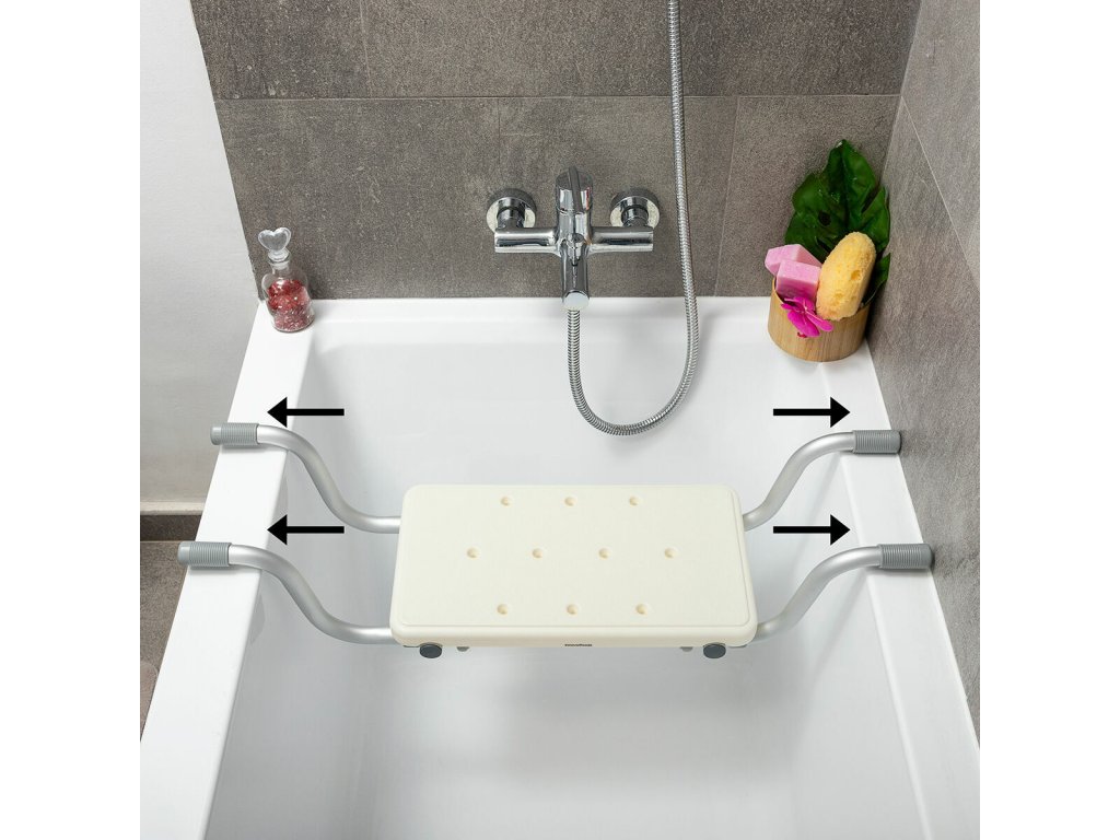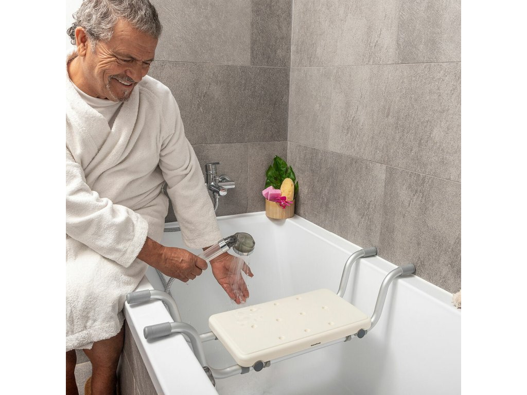 Nové protiskluzové sedátko do vany s nastavitelnou délkou zvyšuje pohodlí a bezpečnost při úkonech každodenní hygieny. Lze jej umístit do vany i jinam a používat 2 způsoby, jako sedátko nebo podnožku.