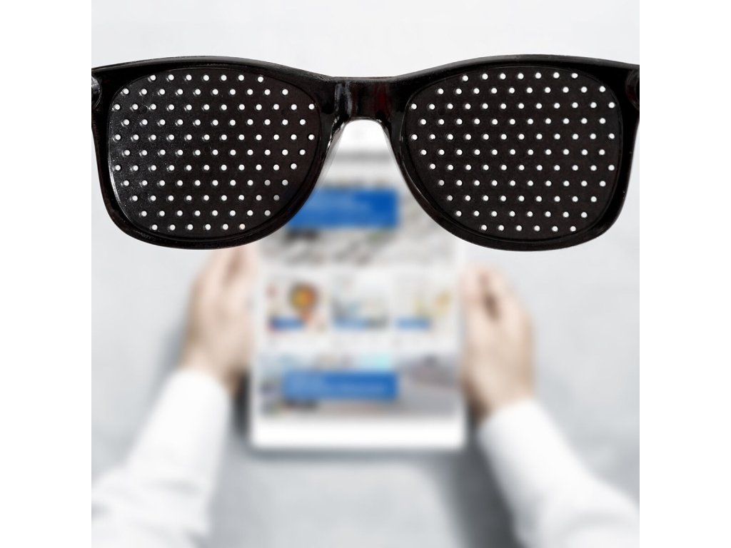 Nové stenopeickébrýle pomáhají procvičovat oční svaly: místo upřeného pohledu stimulují očik nepřetržitému pohybu, při pohledu do jednotlivých dírek nutí zrakopakovaně zaostřit.