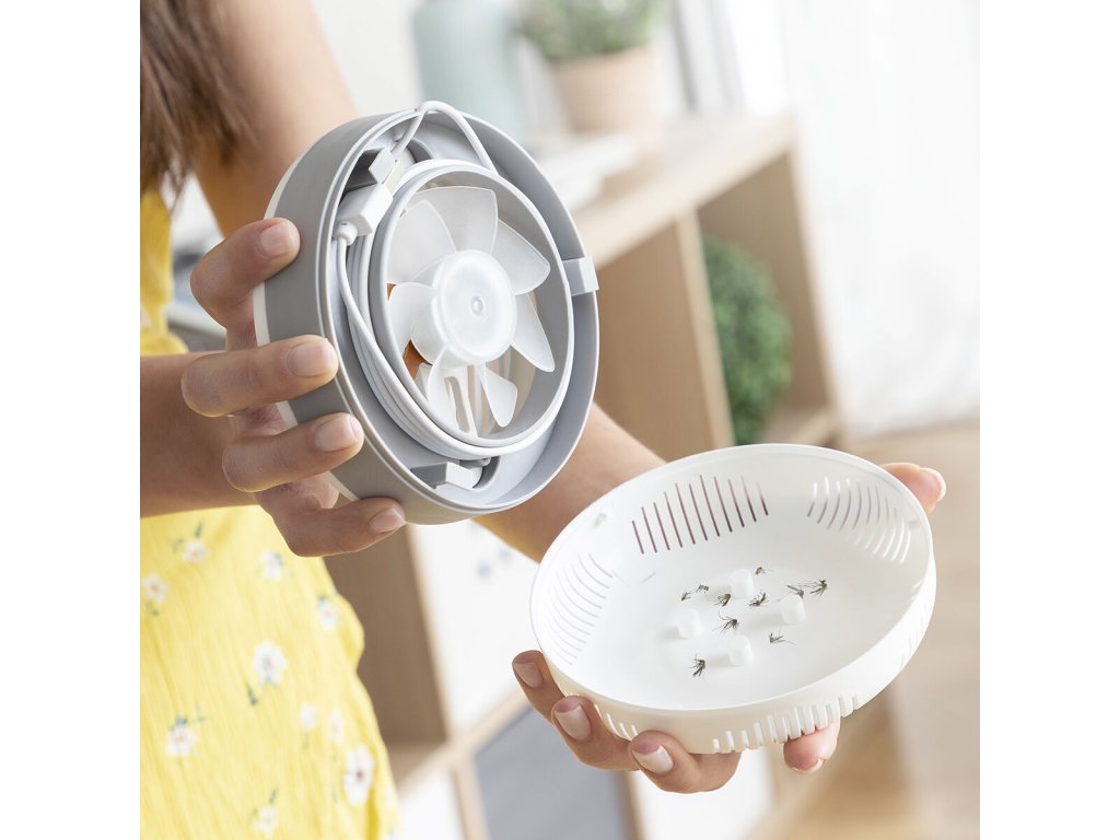 InnovaGoods nabízí nejnovější produkty pro vaši domácnost, jako Sací lampa proti komárům s držákem na zeď KL Lite InnovaGoods ! Objevte široké spektrum vysoce kvalitních produktů, které si stojí za svou funkčností, efektivitou a inovativním designem: světla, úložné prostory, dekorace, klimatizace, zahrada, mazlíčci, atd.Velmi účinná sací lampa proti komárům, která eliminuje nepříjemný hmyz přirozeným způsobem (ekologicky), bez nepříjemných pachů nebo chemických či toxických látek znečišťujících životní prostředí. Má 4 UV LED (360-400 nm), které přitahují komáry a vnitřní ventilátor, který je nasává do vnitřní nádrže, kde jsou uvězněni a zničeni. Díky inovativnímu kompaktnímu a přenosnému designu ji lze snadno umístit do různých poloh a lze ji snadno nosit kamkoli. Zahrnuje adhezivní držák pro umístění na zeď, je-li to požadováno, a tím šetří místo. Používá se hlavně uvnitř, ale lze ji použít i venku. Funguje prostřednictvím připojení USB, takže její kabel USB (je součástí dodávky) lze připojit k zásuvce (s adaptérem USB, není součástí dodávky), k notebooku nebo powerbance, kterou můžete použít kdekoli. Kabel se pro větší pohodlí zavine uvnitř základny zařízení. Chcete-li ji vyčistit, jednoduše otevřete nádrž a vyčistěte ji kartáčem nebo vlhkým hadříkem.