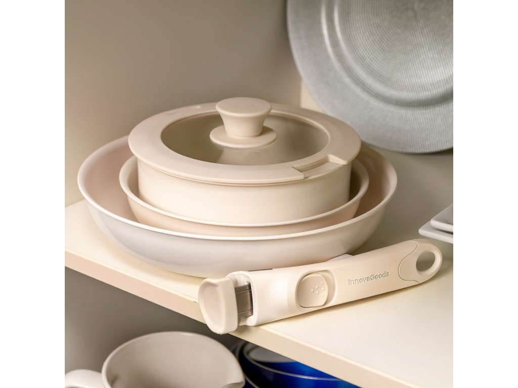 InnovaGoods je zde, aby vám pomohl udělat vaření snadné a zábavné! Nabízíme nejnovější výrobky do vaší kuchyně, jako je Sada pánví s odnímatelnou rukojetí a víkem Passet InnovaGoods 5 Kusy ! Objevte širokou škálu vysoce kvalitních produktů, které si stojí za svou funkčností, efektivitou a inovativním designem!Nová moderní sada nepřilnavých pánví, vybavená odnímatelnou rukojetí a poklicí, umožňuje optimálně a bezpečně uvařit všechny druhy potravin. Pánve lze vkládat do sebe a ušetřit co nejvíce místa. Jsou vhodné do všech typů kuchyní, lednice, trouby i myčky.